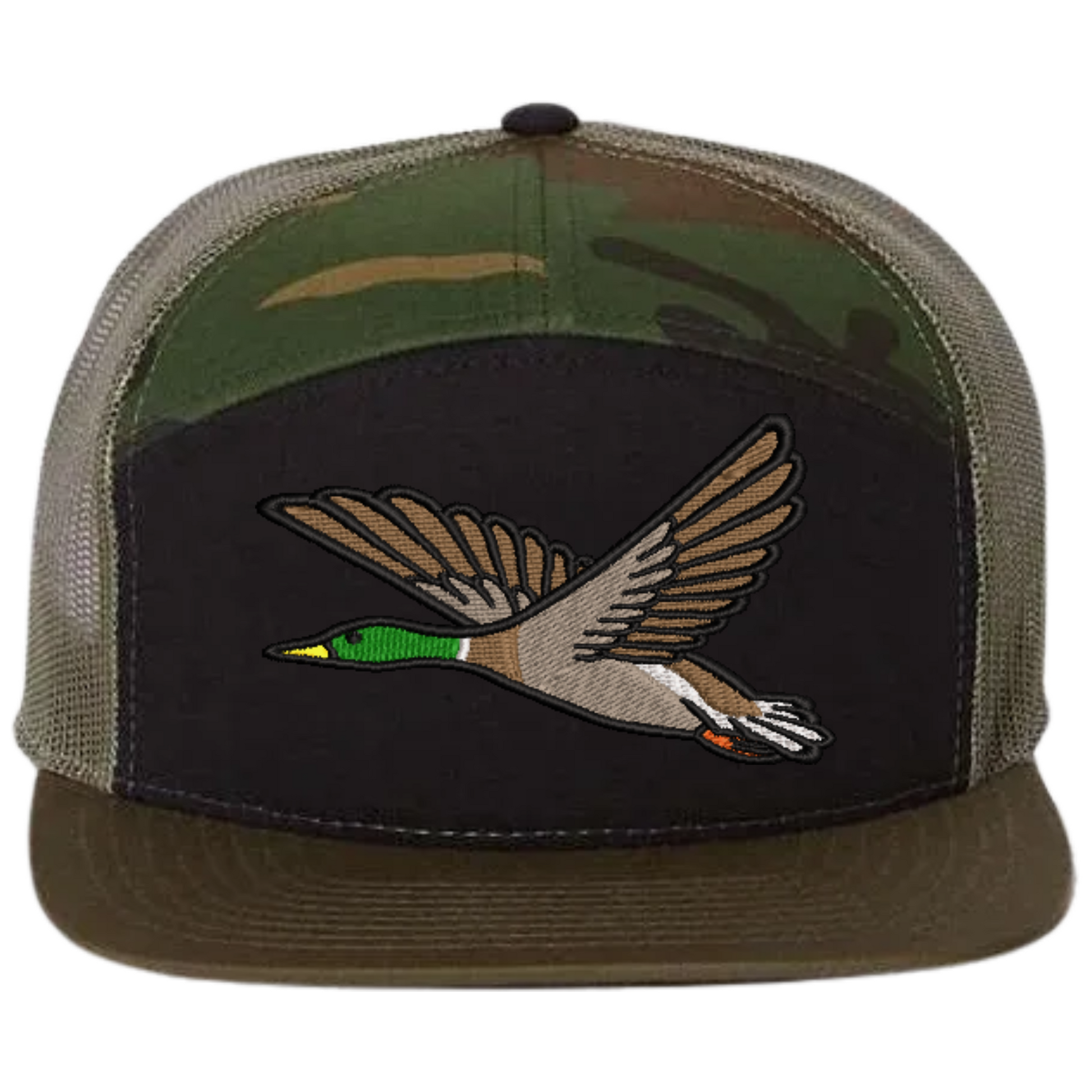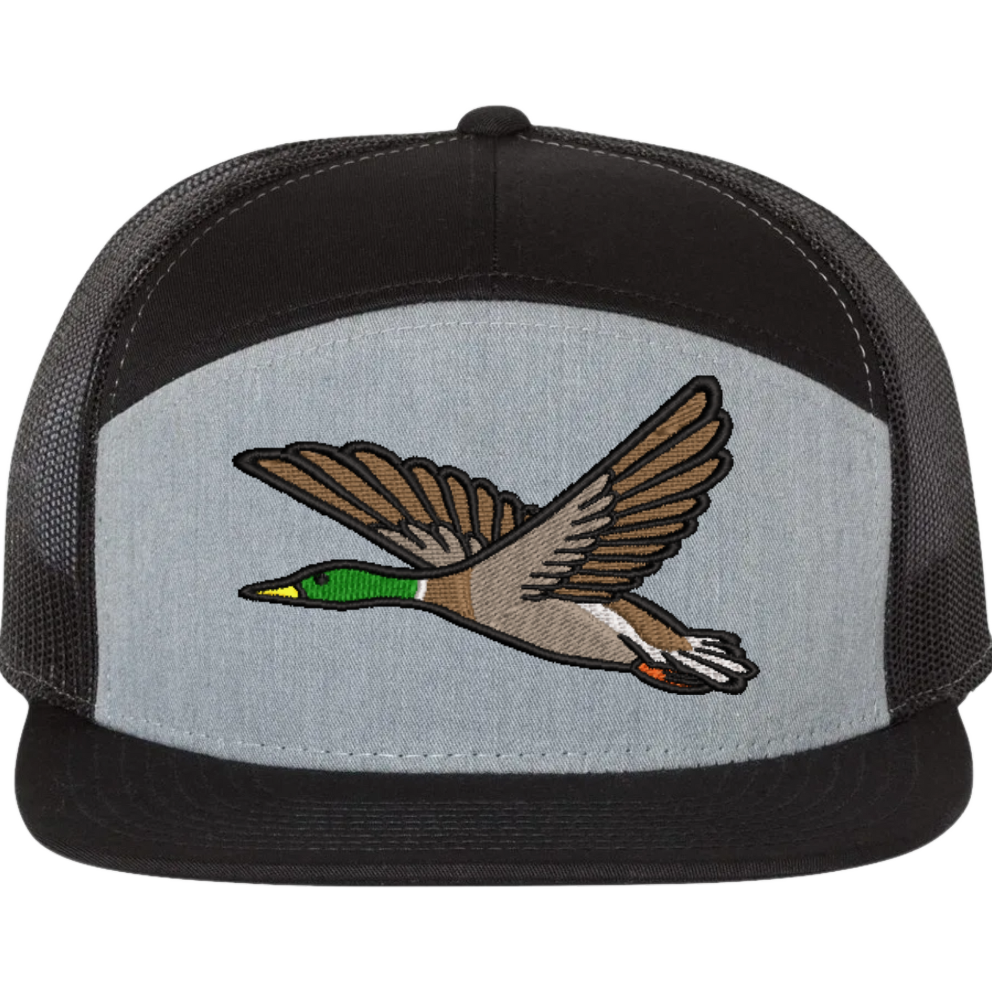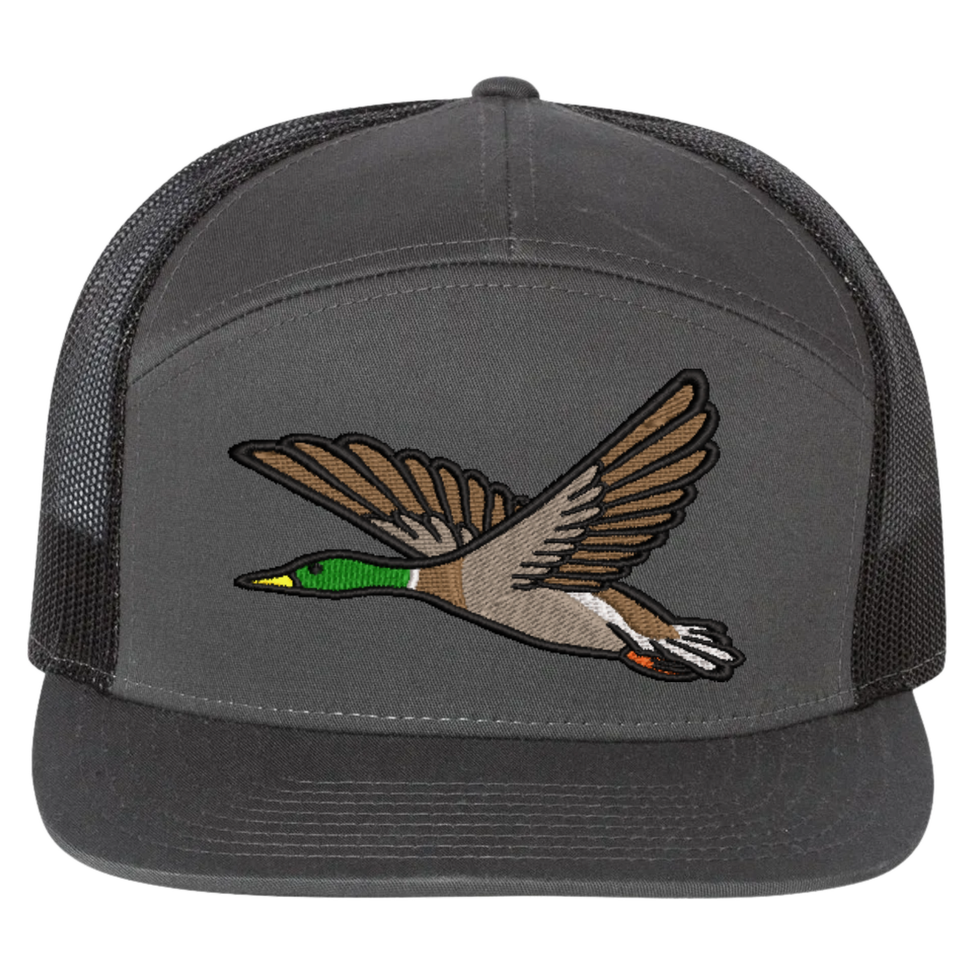Embrace outdoor fashion with our Mallard Duck Embroidered Richardson 168 Flat Bill Trucker Cap. Perfect for nature lovers and those who appreciate quality headwear with a touch of the wild.